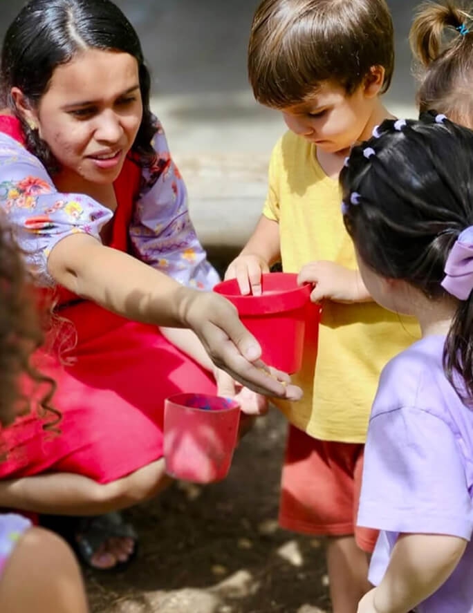 A equipe segue a orientação do pediatra e da família para a alimentação até o momento em que os bebês já puderem participar da rotina alimentar na escola.